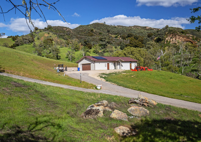 Tucked away in awe-inspiring hills that back to 800+ acres of County-owned land, this 90+/- acre property offers sweeping views of scenic Santa Margarita Lake. This is a rare opportunity to own a slice of paradise that’s just minutes from town yet far enough to offer complete tranquility and a true escape from city life. Whether you're drawn to living in the thriving greater Paso Robles area wine country, looking to start a farming venture, raise livestock, or simply indulge in outdoor recreation, the possibilities here are endless. Built in 2021, the 2-bedroom, 2-bath home blends warmth and elegance with thoughtful features, such as refined granite countertops, wooden floors, 5-burner stove, claw foot tub, and attached 2-car garage. Solar panels are owned outright, reducing energy costs and offering sustainability. The connected PG&E electricity runs underground with no obstructing power poles. There is a permitted 1,620 sq. ft. commercial building/workshop, ideal for a variety of uses. With office space, two bathrooms, insulation, two heat pumps, fire sprinklers, and a dedicated 12,000-gallon water tank, the facility is a dream come true for artists, craftspeople, and viticulturists alike. The newly constructed 2,000 sq. ft. metal barn building, permitted as an Ag-Exempt building, offers versatile space with potential for a variety of uses and activities. Equipped with underground PG&E electricity, septic, domestic water, high-speed internet, and spectacular views of the lake framed by the glass-paneled roll-up doors opening to a covered patio, this adaptable building is perfect for enjoying the surrounding beauty. Just beyond your doorstep lies Santa Margarita Lake Recreation & Natural Area, a County park with many opportunities for activities, including camping, fishing, boating, hiking, biking, and horseback riding. The nearby town of Santa Margarita offers charming local attractions like celebrated restaurants, wine tasting, and an adventure park. San Luis Obispo is a short drive away with its wide range of services, job opportunities, hospitals, university, and cultural amenities. With breathtaking natural surroundings, this setting invites you to live, work, relax, and enjoy everything this picturesque and desirable region has to offer.